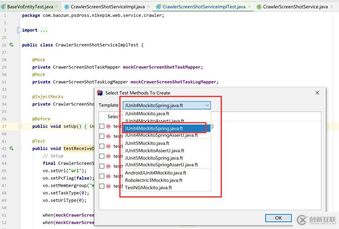 選擇第二項后,將彈出一個框。在這里,它將自動識別需要Mock的當前類的成員變量。直接單擊“確定”