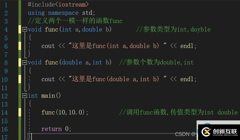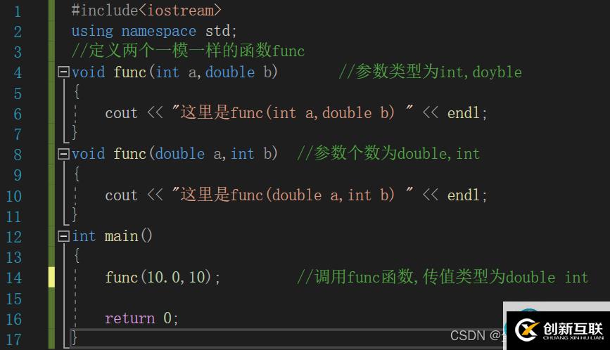? 我們依然以上面的函數為例,第一個函數我們先定義一個int型的參數再定義一個double的參數,第二個函數我們先定義一個double型的參數再定義一個int型的參數
