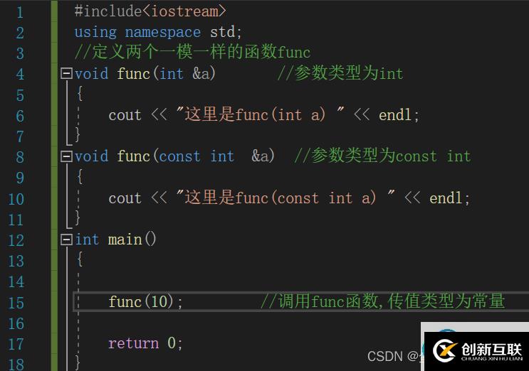 之所以傳入一個int型的值不調用第二個用const修飾引用,是因為const修飾一個變量后,該變量就變為已讀,可以近似看成一個常量,當我們調用時傳入一個常量