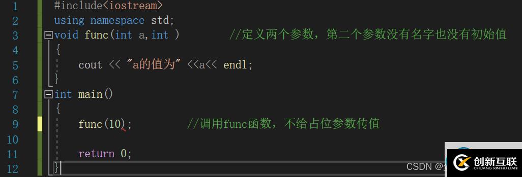 報錯信息顯示函數調用的參數太少,這就是因為我們沒有給占位參數傳值,但是當占位參數有默認值時,按照默認參數的性質,可以不給占位參數傳值