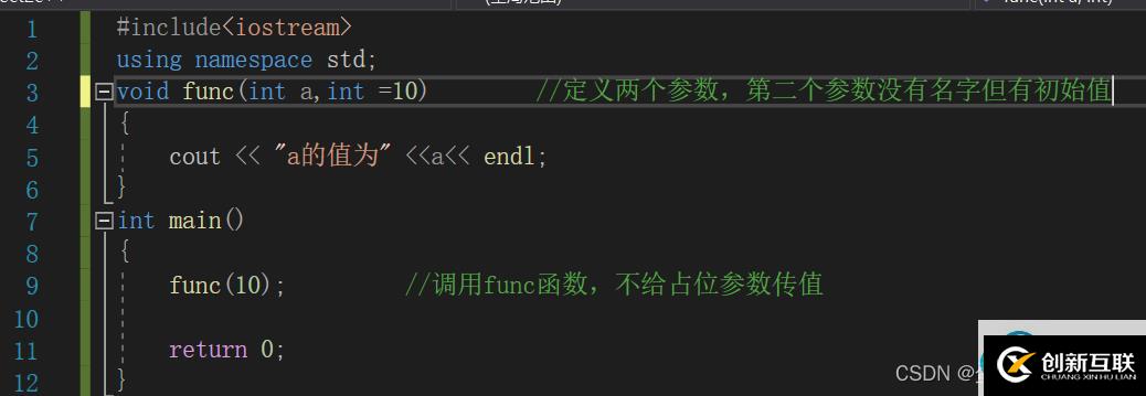 ? 占位參數的性質:占位參數沒有默認值的時候必須給它傳值,當占位參數有默認值時,可以不給它傳值