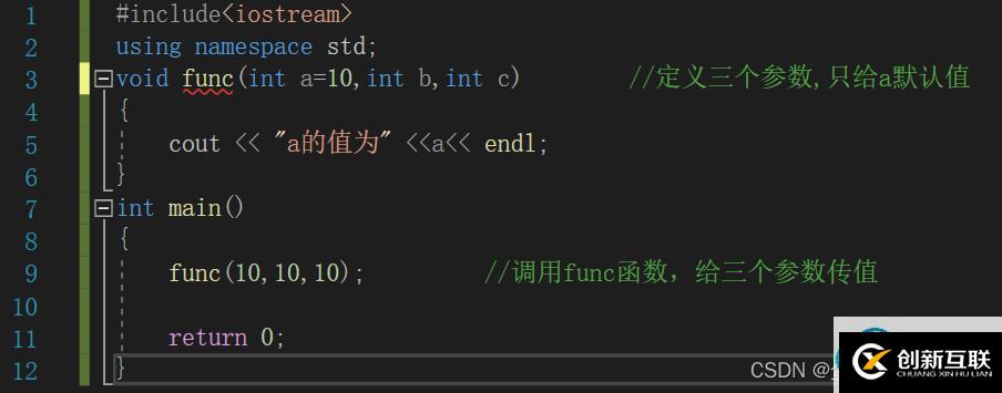 可以看到也正常輸出了,這是因為c就是最后一個參數,后面沒有參數了,假如c后面有參數,則c后面的參數也必須要有默認值