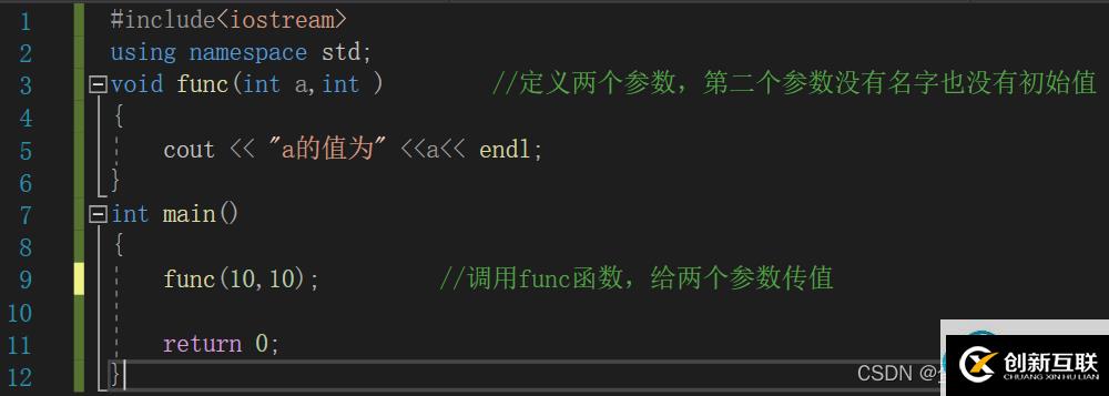 可以看到我們定義了兩個參數,但是第二個參數沒有名字也沒有初始值