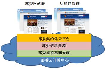 垂管部門的網站群往往是全國大集中建設,且通常已有較好的集約化基礎,所以垂管部門的網站應用支撐平臺集約化建設可繼續沿用大集約化的思想,即服務集約、平臺集約、數據集約、管理集約,基于部委的云計算中心部署統一應用支撐平臺,全國本系統內的網站均在本平臺上進行建設、運營和管理。