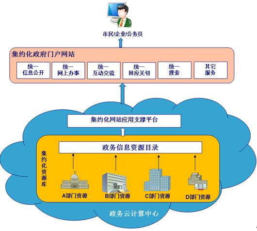 地方政府的信息與服務集約化可分為省、市、縣三級集約化方式。省級政府網站服務集約化可整合省門戶網站和省直部門網站信息與服務,地市級政府網站服務集約化可整合地市門戶網站和市直部門網站的信息與服務,而區縣級政府網站服務集約化可建設在本級平臺,也可遷移到上級(地市級)門戶網站平臺上,無論在哪級網站平臺之上,區縣下面的部門、鄉鎮、街道網站的服務均整合到區縣門戶網站中,無需再做保留。