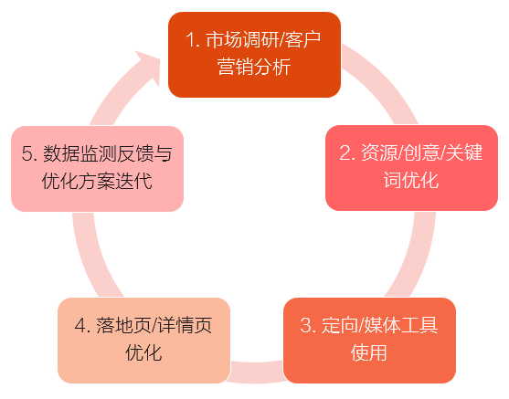 5個關鍵要素形成廣告優化的閉環,持續反復助力廣告優化。