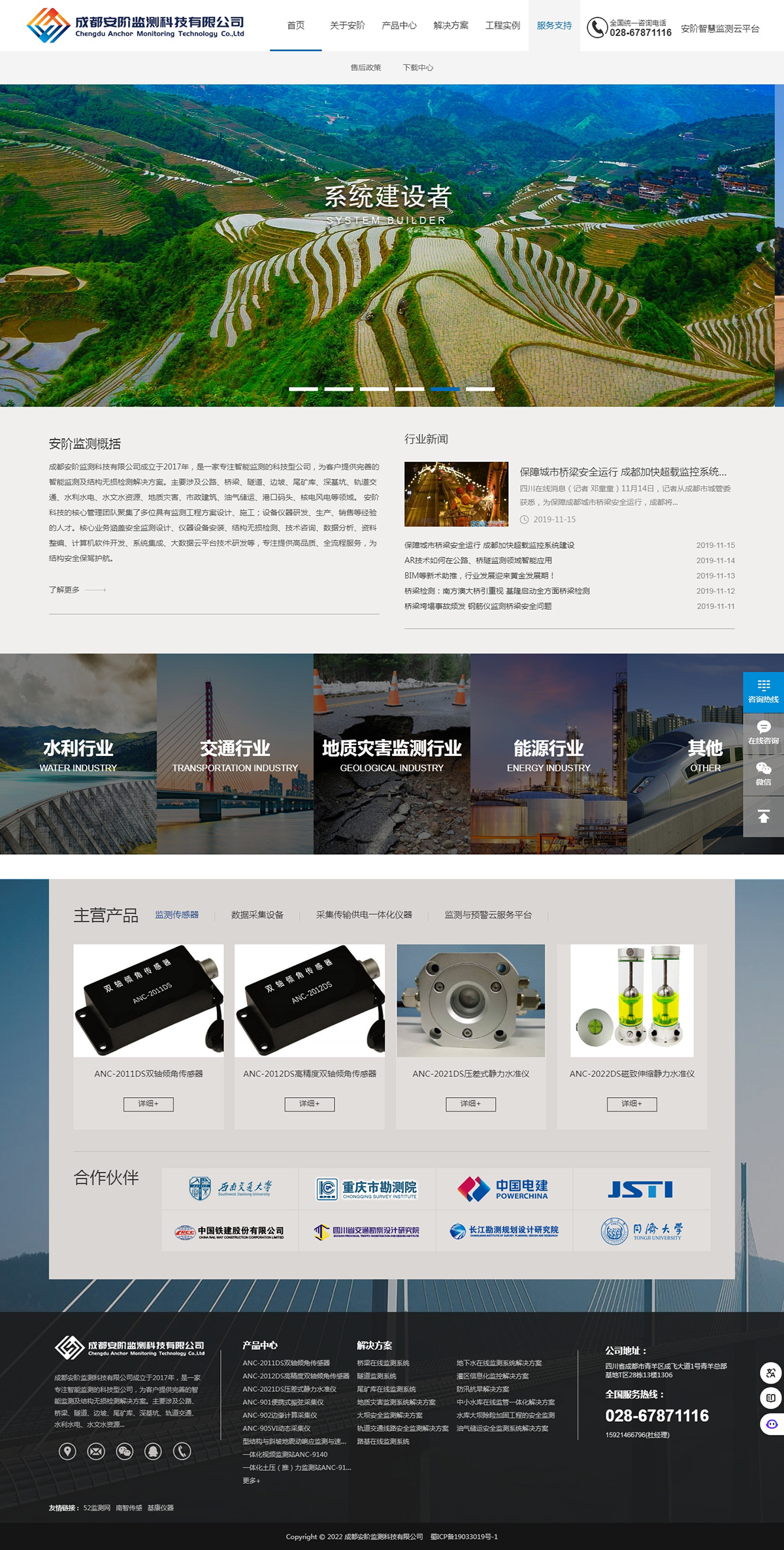成都安階監(jiān)測(cè)科技有限公司成立于2017年,立足安全監(jiān)測(cè)領(lǐng)域,涉足公路、鐵路、路橋隧、軌道交通、水利、水電、水文水資源、 地質(zhì)災(zāi)害、市政建筑、古建筑、危險(xiǎn)建筑、深基坑、油氣儲(chǔ)運(yùn)、港口碼頭、核電、風(fēng)電.輸配電、尾礦庫(kù)和礦山等多個(gè)行業(yè)。