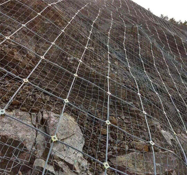 主動邊坡防護網(wǎng)系統(tǒng)能夠?qū)⒕植考泻奢d向四周均勻傳遞以充分發(fā)揮整個系統(tǒng)的防護能力,即局部受載,整體作用,從而使系統(tǒng)能承受較大的荷載并降低單根錨桿錨固力要求。主動邊坡防護網(wǎng)特點:具有高柔性,高防護強度,易鋪展性。適應(yīng)任何坡面地形,安裝程序標準化、系統(tǒng)化。