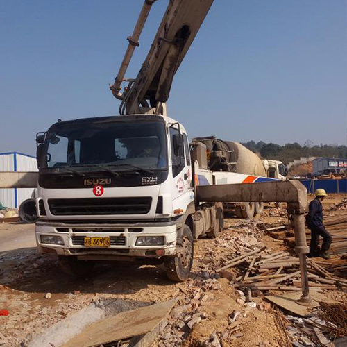 | 混凝土泵車的動力通過動力分動箱將發動機的動力傳送給液壓泵組或者后橋,液壓泵推動活塞帶動混凝土泵工作。然后利用泵車上的布料桿和輸送管,將混凝土輸送到一定的高度和距離。 |