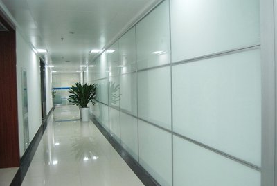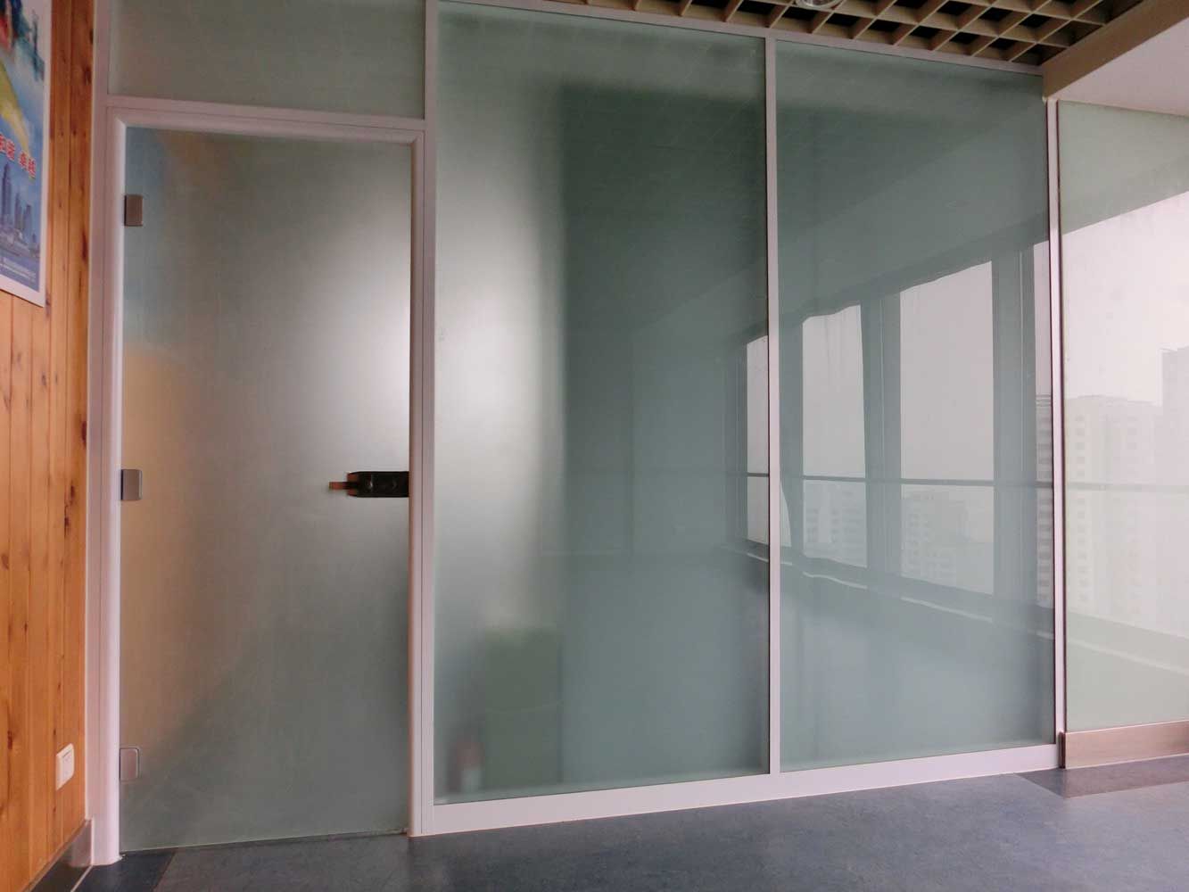 雙層磨砂玻璃隔斷墻可采用橫檔式分隔,展現現代高雅的辦公環境,磨砂玻璃帶來的渲染效果,使得在辦公勞累時能帶給人一種清新、幽雅的感覺。