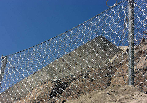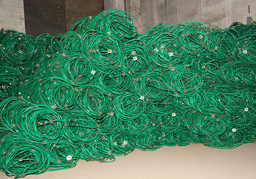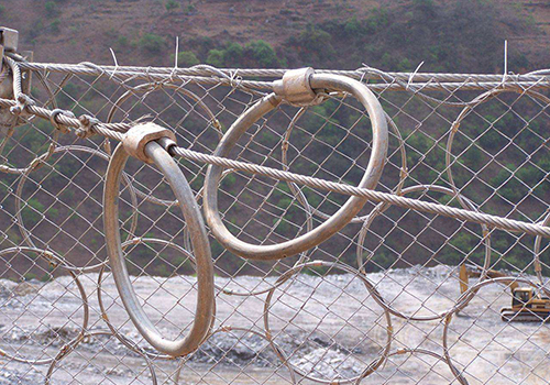 用數(shù)股鋼絲盤(pán)結(jié)成環(huán)形相互套接而形成的網(wǎng),