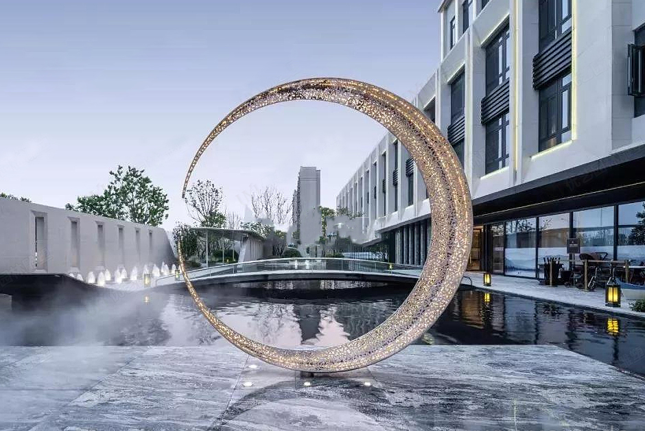 現代許多抽象雕塑,以其形體的簡明和空間意向強而具有很強的與環境的融合性和奪目性,不以描繪具體物象為目標的抽象藝術通過線條、塊面、形體、材質等來傳達各種情緒,激發人們的想象,啟迪人們的思維。