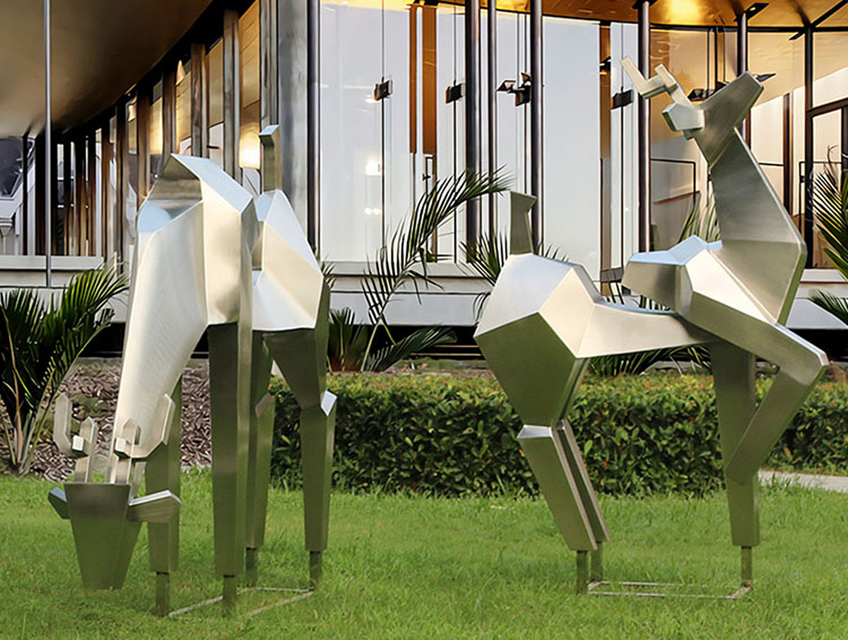 園林不銹鋼雕塑泛指那些安裝應用于園林的不銹鋼雕塑作品,主要以標志性雕塑及人物、動物雕塑為主,標志性雕塑塑造園林形象,人物及動物等則往往用于烘托園林氛圍,往往以可愛和運動為主線進行設計。