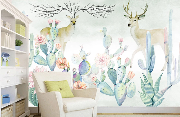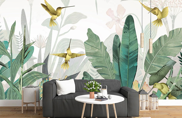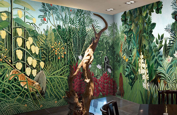 用手繪出的植物圖案恐怕是最流行的墻面手繪圖案了。其中,東南亞風格一直是居室潮流的熱點,無論是充滿神秘色彩的泰國飾品,還是鮮艷奔放的印度圖案,都是當前裝飾中常見的元素。同樣,帶有這個區域典型特征的圖案,如大片綠色的植物、海草、貝殼、翠綠欲滴的芭蕉等,都成為了裝飾中的寵兒。畫面上則講究層次感、飄逸,略帶女性的嬌柔。