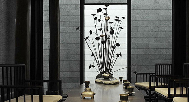 第一是傳統的地方風格,這種風格茶室多位于風景旅游區、公園內,由于這種建筑本身就具有明顯的地方特色,因此茶室室內設計大多也具有相同的風格,因此多采用地方性較強的材質進行裝飾,如木、竹、藤以及石材等。頂棚可根據建筑本身的屋頂進行設計,墻面盡可能打破單調感,可采用石材墻面或是木質梁柱等來實現,墻面可采用地方工藝品或是條軸字畫進行裝飾,地面以青磚或是仿青磚材料鋪設為宜,也可以采用毛面花崗石。