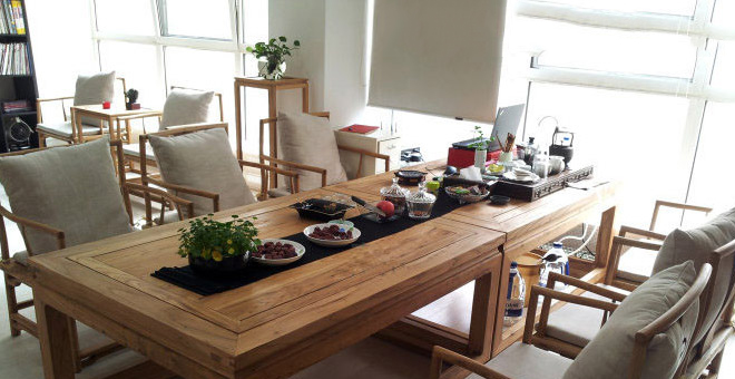 茶樓的包間內(nèi),云淡風(fēng)輕處,翻過心苑中央那一頁橫亙的詩章,在清月背后以春藤,找尋芳菲煙霞永意的韻律,那一杯茶,散落,于歌吟的淺階,一地馨香。在中式清雅的意境中,內(nèi)心可感受到一個“靜”字。這個“靜”中蘊含了儒家文化,也體現(xiàn)了中原佛教文化中的“佛”字哲學(xué)。