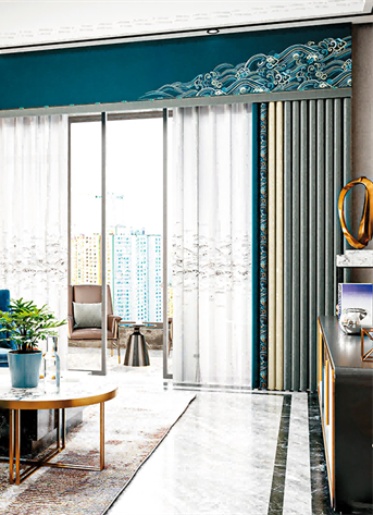 對于遮光性要求不高的空間,可以采用一些透光的輕薄材料,來增加空間的通透性。較大的客廳宜用落地布藝窗簾,可以配窗紗,不需遮光布,款式上可加配帷幔。較小的客廳可用不透光的卷簾、布百葉及日夜簾等。不同朝向的窗戶,選擇不同的窗簾。