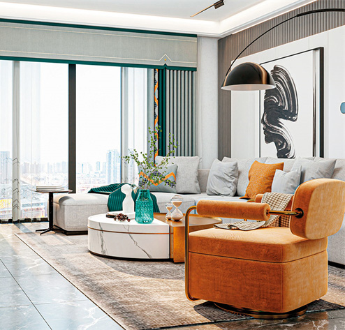 普通的窗戶一般會(huì)使用對(duì)開(kāi)簾款式,搭配窗簾桿或滑軌。而窄窗(寬度小于1.5米)則使用單開(kāi)即可。光線變化快的房間,應(yīng)該使用羅馬簾,通過(guò)手控或電控裝置可隨意調(diào)節(jié)窗簾的下擺位置,控制光線進(jìn)入房間的多少。如果在窗前擺放了家具,也可安裝羅馬簾,更加方便開(kāi)啟,而且不占空間。羅馬簾還適用于六邊形或圓弧形的房間,這樣的房子,窗戶會(huì)分隔成幾部分,羅馬簾可以保證每塊窗簾之間的銜接良好。飄窗設(shè)計(jì)也用羅馬簾,安裝在窗框內(nèi),節(jié)省布料和空間。羅馬簾可以制作成平面、扇形或水波簾等,可根據(jù)風(fēng)格和布料選擇。