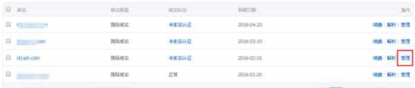 需要到萬網(wǎng)后臺(tái)去修改,這里需要注意的是:不是增加或者修改解析條目,而是修改解析服務(wù)器。所以在萬網(wǎng)后臺(tái)選擇的是"管理"而不是"解析"