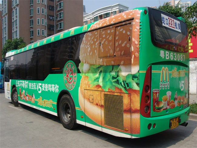 在制作車身廣告噴繪主要是利用車身貼,單面透,單孔透等寫真噴繪材料,在寫真噴繪設備操作下制作而成。而公交車車身貼是廣告宣傳方式最為靈活隨動,因為線路跨度長,視覺沖擊力強,暴光率極高,所以給企業的品牌宣傳,產品推廣帶來顯著的效果