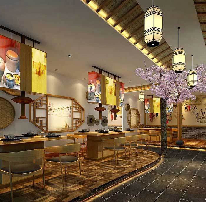 火鍋店簡介:韓式火鍋店設計是一個將韓式文化、品牌、氛圍、體驗等特色相結合的韓文化體驗火鍋店,設計師不僅需要融入韓式的建筑特點,對于火鍋店內的家具和裝飾品的選擇也充滿了濃濃的韓式風格。