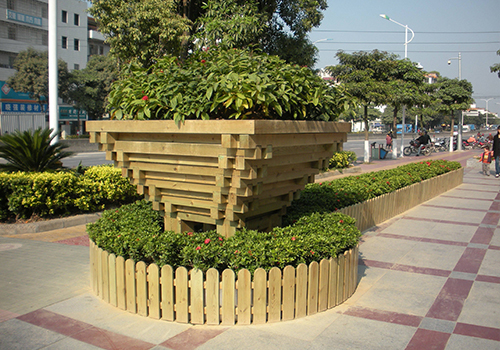 | 市政花箱按照材質可以分為防腐木花箱、塑木花箱、PVC花箱、鋁合金花箱。 1.防腐木花箱,以木材為原料,通過添加防腐試劑起作用。但由于戶外日曬雨淋的天氣情況,防腐木花箱并不耐用。市政也逐漸減少使用。 2.塑木花箱,木粉和塑料結合的產物。使用年限高于防腐木花箱,但也有缺點,就是容易斷。市政上用的也比較少。 |