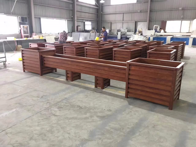 花箱采用(環保型塑木材料)使用時令鮮花或艷麗的木本花卉來增加色彩。幾組容器組合在一起的效果。