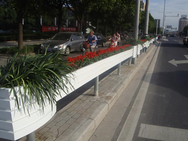 PVC花箱成分是PVC(聚氯乙烯),花箱普遍的顏色為白色。PVC材料可彎曲,能做到一些防腐木、塑木做不到的造型,外觀比較新穎。鋁合金是指純鋁里面加入一定比例的合金元素加工承德原料,鋁合金花箱就是用這種材料制成的花箱。