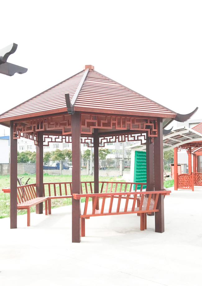 在鄉村,涼亭也不可少。涼亭在中國古典建筑中擁有獨特的地位。觀賞涼亭可以從飛檐、裝飾性上考量,現代的涼亭追求簡潔的現代感,這款涼亭呈現出的簡樸之美,才是鄉村樸實的面貌。淺色與深色的運用,使得涼亭用色不至于沉悶,增添了亮度。