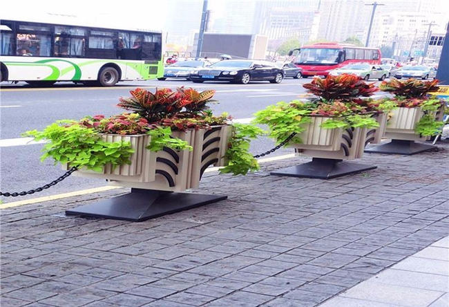 從美觀度和生態(tài)性上講:組合的花箱高低層次感,形態(tài)的變化組合,成為了城市道路、公共場所一道靚麗的自然風(fēng)景線。提供了綠化植被健康生長的自然區(qū)域,這正是規(guī)避了土地利用率低,過多占用城市綠地面積的有效方式,將道路花箱置于道路中間和道路兩旁,不僅起到規(guī)范交通,防止意外事故發(fā)生的功效,更具有美化環(huán)境的功能。