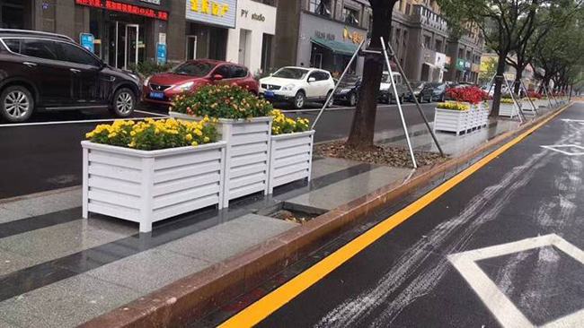 2、園藝花箱在視覺上,線條流暢,外型優美.增添了城市色彩,不僅僅是鋼筋水泥的城市了.而且也豐富了人們的生活樂趣.尤其是對老人家,可以利用花箱來種植一些花草,有利于身心的健康。