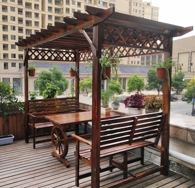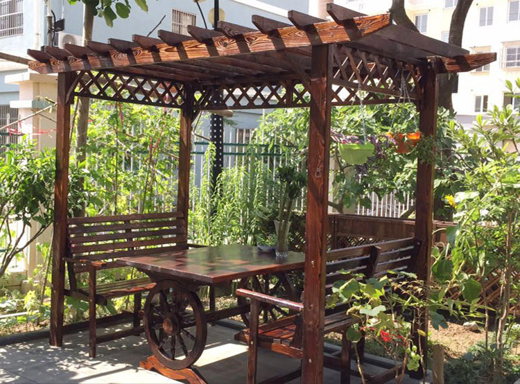 本文名稱:葡萄架防腐木屋實(shí)木桌椅