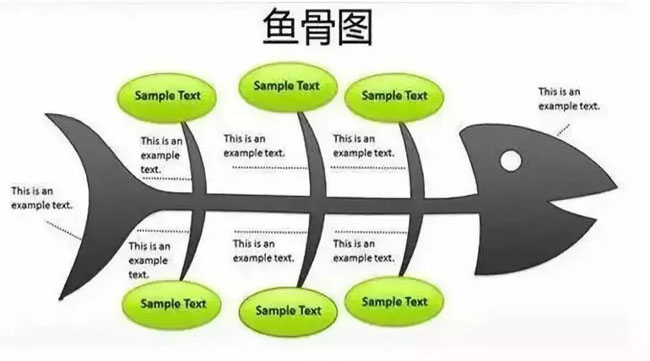 魚骨圖通過分析找出導致問題的因素,并將它們與特性值一起,按相互關聯性整理成層次分明、條理清楚,并標出重要因素的形似魚骨的圖形。