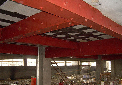 | 三、框架梁的加固方法 在支撐梁的兩端柱上加鋼筋混凝土柱帽,在搗混凝土柱帽時(shí)在柱帽里預(yù)埋鋼板,等柱帽的混凝土養(yǎng)護(hù)期到了規(guī)范的時(shí)間了,將滿足要求的工字鋼直接與柱帽上鋼板焊接成為一個(gè)整體,工字鋼上邊直接抵梁的下口。 四、碳纖維布加固法 在需要加固的地方,粘貼悍馬碳纖維布進(jìn)行加固,現(xiàn)在是用的最多的加固方法。? |
