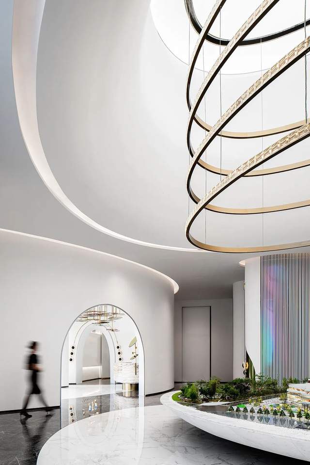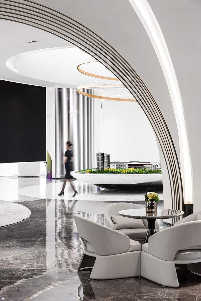 古希臘畢達(dá)哥拉斯派認(rèn)為:“一切平面圖形中最美的是圓形。”而在中國(guó),圓形同樣也是一大重要的美學(xué)元素。古典園林中的洞門,嫻靜文雅的團(tuán)扇,無不流露出中華傳統(tǒng)文化中柔潤(rùn)宛轉(zhuǎn)的美學(xué)追求。WJID在成都旭輝廣場(chǎng)售樓處的設(shè)計(jì)中,圓形元素隨處可見,取中西方文化共通之意、共賞之美。