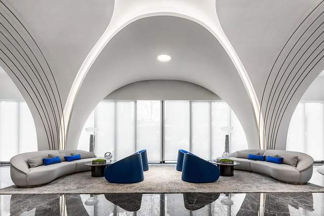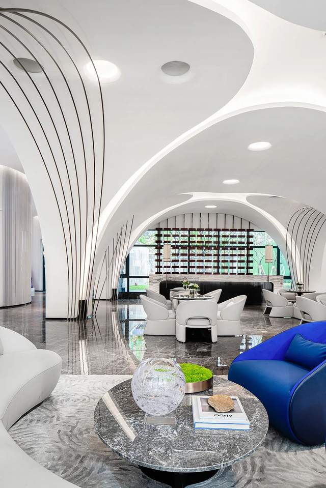 地面、墻壁和屋頂都呈優(yōu)美曲線的空間,形似花開的穹頂,是設(shè)計(jì)中的最大亮點(diǎn)。作為一個(gè)沒有縫隙的整體,這種效果充滿魔力,十分標(biāo)新立異。WJID 消解了建筑中的定律,創(chuàng)造了一套屬于自己的規(guī)則。