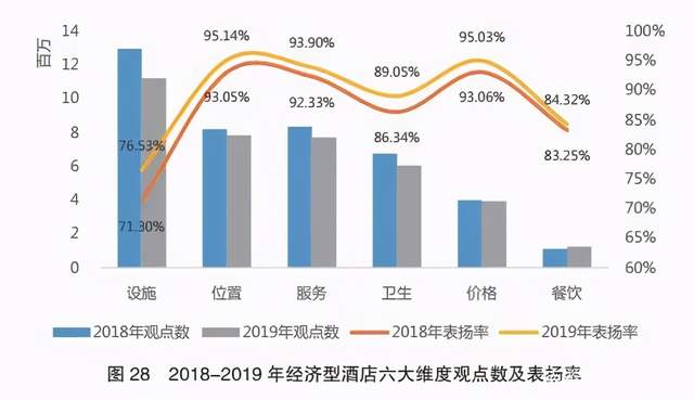 報告中分別針對豪華型酒店、高端型酒店、中端型酒店、經濟型酒店、非標準型酒店分別做網絡口碑分析。報告指出,中端酒店日益重視品牌化經營,從而酒店經營者在網絡口碑管理中投入更多的精力。2018年到2019年期間,中端酒店飽受商務出差人士的青睞。出差型用戶對中端酒店的設備、人性化服務、餐飲等增值服務方面傾心。