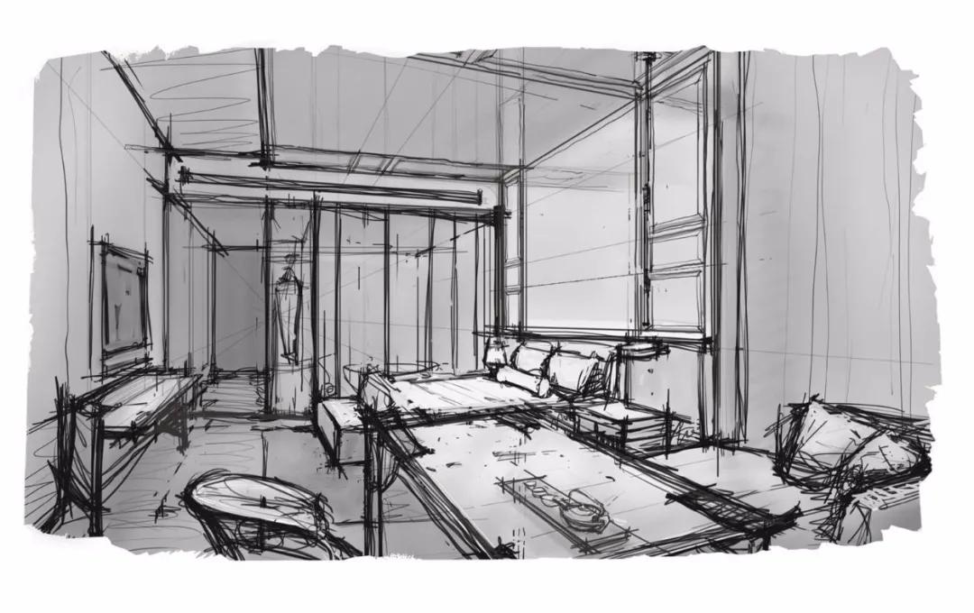 淋浴空間的宣紙夾膠玻璃,也來源于電影的經典畫面——張國榮戳破宣紙門窗一窺美人,設計師將材料以現代手法演繹古代的客棧宣紙門窗,讓整個設計在形體、圖像、材料上都緊扣故事。