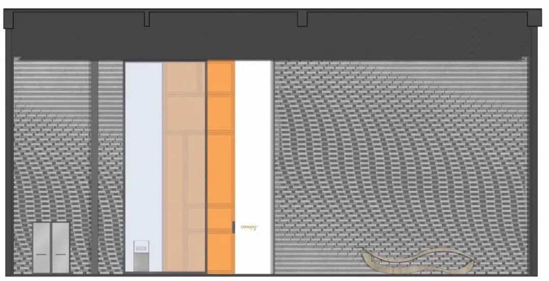以青磚墻傳承成都的文化記憶,將傳統磚墻經過現代數位化的轉譯,捕捉時間維度的瞬間狀態,形成動態曲線的表達。