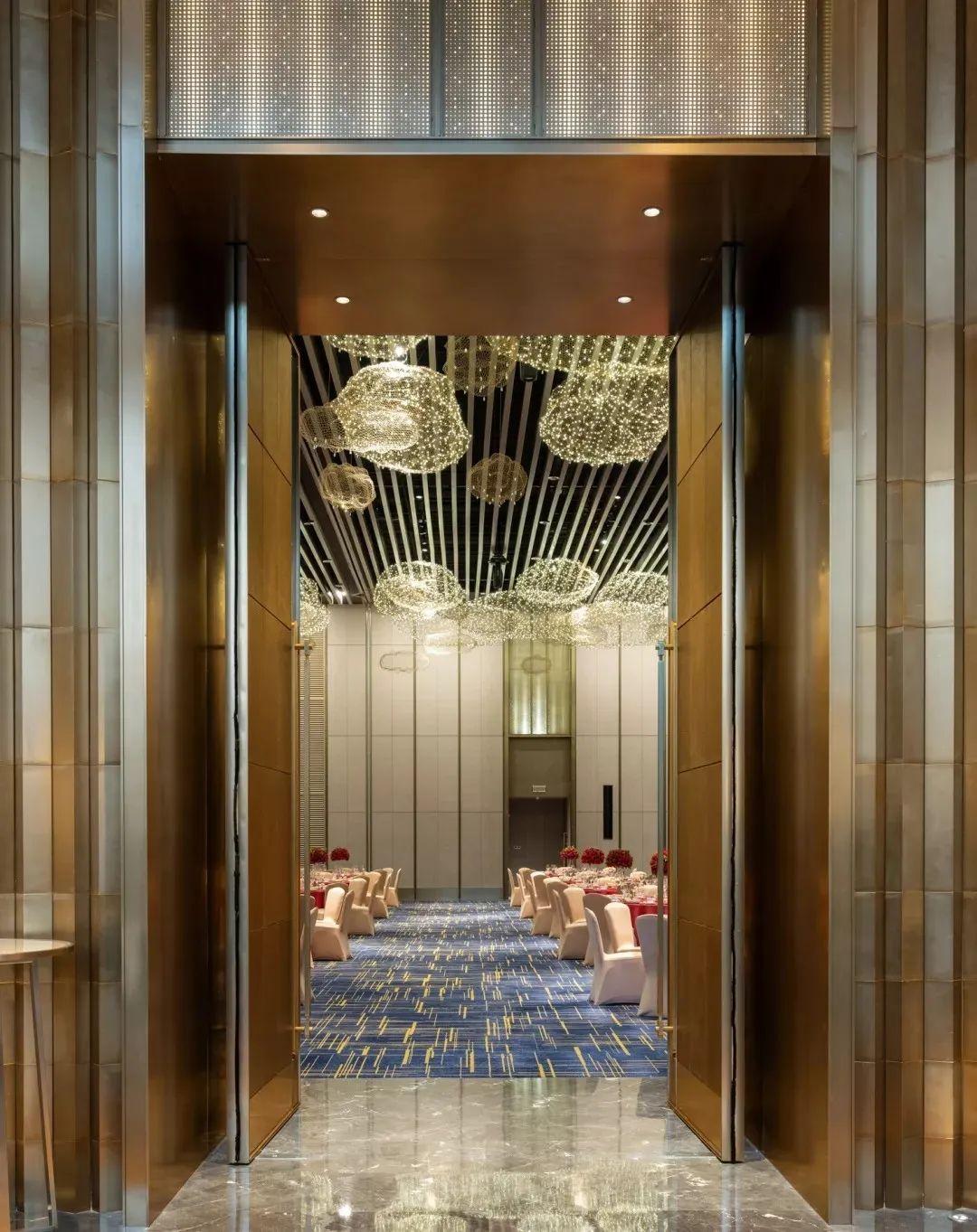 大堂入口處的云朵飄至宴會廳,使宴會廳成了一個放置藝術品的寶盒,神秘無限,變幻萬千場景。