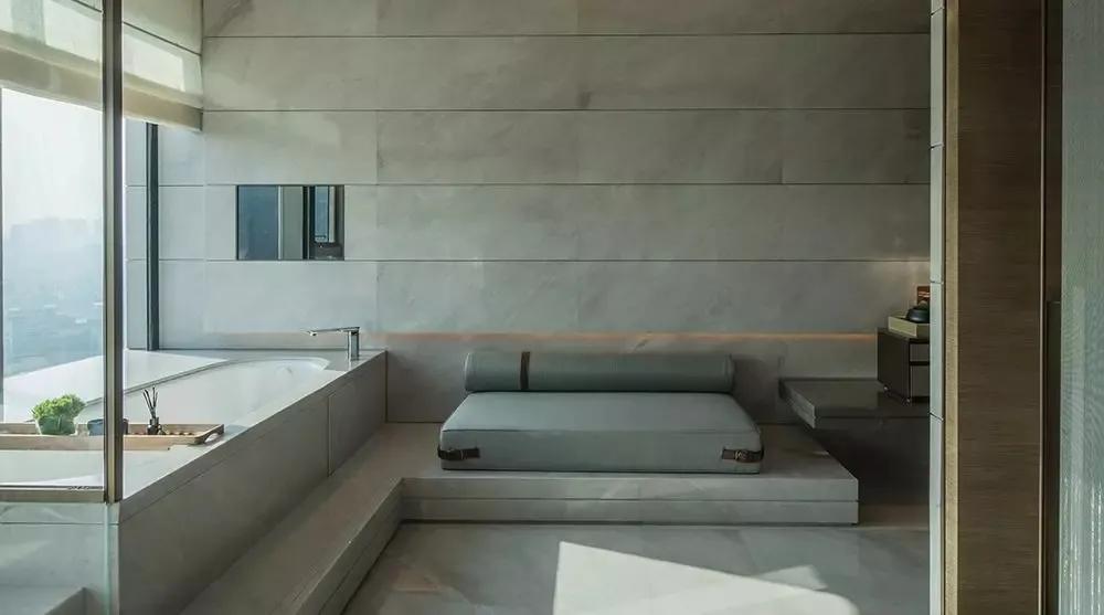 進入套房甚有探索的感覺,不規則房型,于轉角發現小驚喜,透明亞克力的運用更是增添趣味,視覺玩味不盡。窗邊的弧形沙發、一桌一椅,一燈一幾以靜默姿態催發一種撫慰人心的閑情余緒。