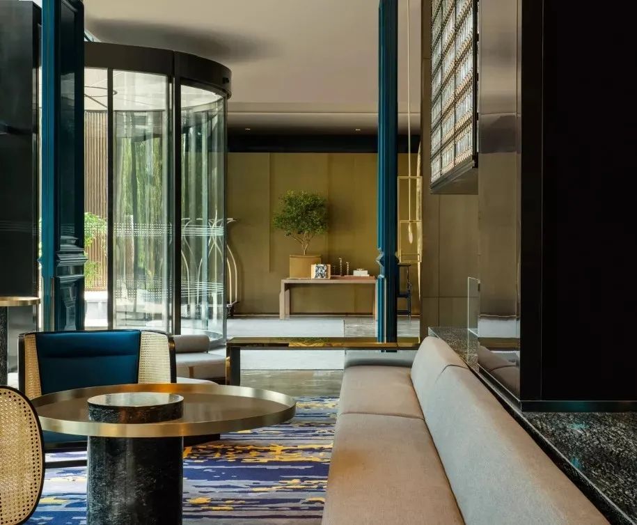 步入大堂,東方氣場與藝術氣息充斥于視線停留處。古銅的質感與寶藍色大宅門演繹奢華,也正是定義為過廳的空間為精彩拉開序幕。