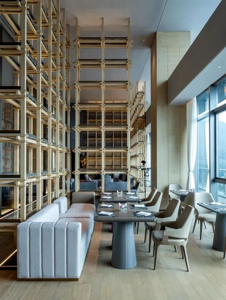 從建筑中提取體塊設計元素運用到室內平面布置上,讓室內空間更具構成感、立體感,同時將生活方式元素引入設計,讓酒店更加生活化。