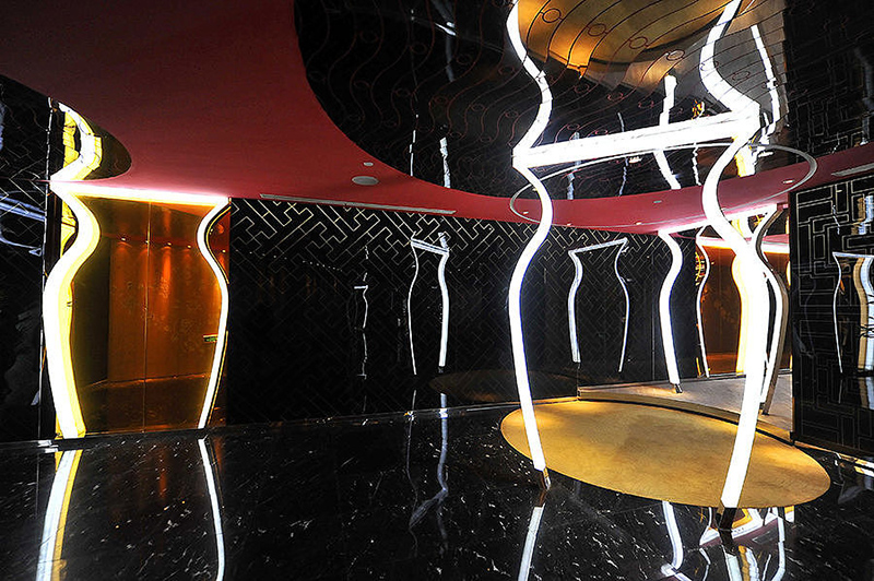 以新中式輕奢為主,包間造型吊頂、墻面采用撞色搭配,運用軟裝搭配點亮全局,輕盈修整裝飾,將傳統文化與現代審美相結合,在提煉古典中式元素的同時,豐富其色彩,簡約的中式餐桌,自帶優雅氣質,充滿韻味。