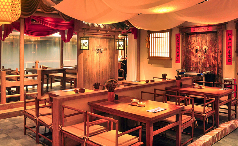 仿佛將客人領(lǐng)入古代的酒樓,去享受那個(gè)時(shí)代的繁盛奢華的生活。實(shí)木門面仿古做的惟妙惟肖,讓人耳目一新,很有特色。再加上實(shí)木雕刻的店門,可見其做工細(xì)膩,獨(dú)具匠心。如此的設(shè)計(jì)會(huì)成為那些有懷舊情節(jié)或是追求高雅恬淡生活的客人首選,因?yàn)樗艠阕匀坏娘L(fēng)格實(shí)在是引人注目。