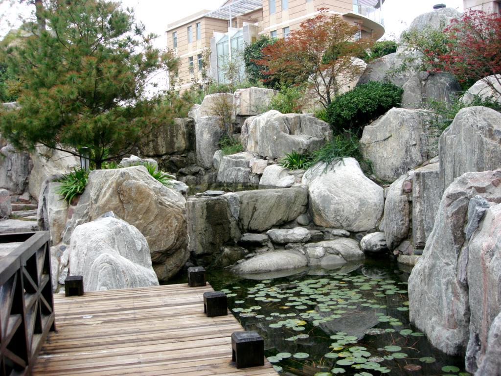 “石文化”在中國傳統(tǒng)園林中注重對石體內(nèi)涵的品評,精神內(nèi)涵高于物質(zhì)屬性,人文方面的作用重于美學(xué)價值。相對于古典園林,現(xiàn)代園林石景設(shè)計更多地利用石體表觀物質(zhì)層面的可觀賞性,并利用現(xiàn)代美學(xué)原理進行布局,從而挖掘石景的美學(xué)價值。選石注重體量、結(jié)構(gòu)、尺度、肌理質(zhì)感、美麗的色澤等多方面的標(biāo)準(zhǔn)。