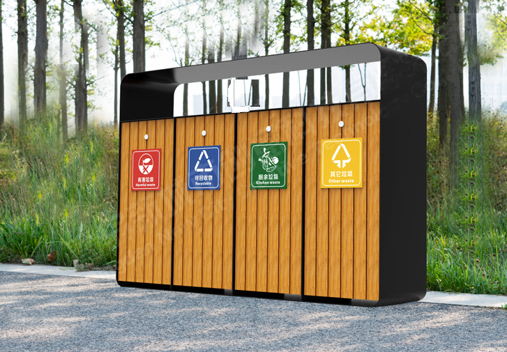 木紋四分類垃圾桶,木紋區別于金屬材料緊張過度的硬質感,給人溫暖、柔和的感覺,充滿了生命的張力。讓人覺得與自然只有咫尺之遙。接受客戶尺寸顏色定制,歡迎咨詢。