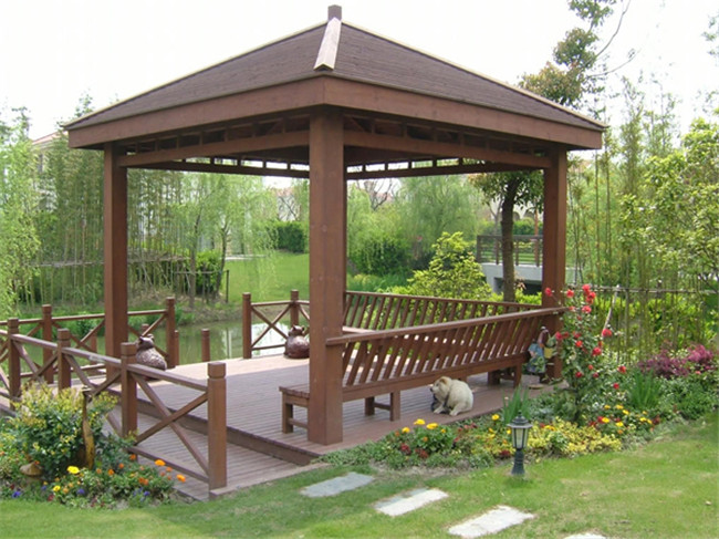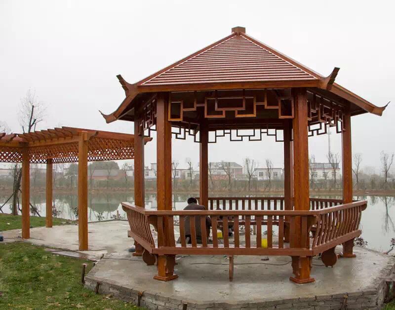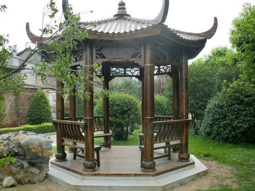 中國建筑是木結(jié)構(gòu)體系的建筑,所以涼亭也大多是木結(jié)構(gòu)的。木構(gòu)的涼亭,以木構(gòu)架琉璃瓦頂和木構(gòu)黛瓦頂兩種形式最為常見。前者為皇家建筑和壇廟宗教建筑中所特有,富麗堂皇,色彩濃艷。而后者則是中國古典亭榭的主導,或質(zhì)樸莊重,或典雅清逸,遍及大江南北,是中國古典涼亭的代表形式。此外,木結(jié)構(gòu)涼亭,也有做成片石頂、鐵皮頂和灰土頂?shù)模贿^一般比較少見,屬于較為特殊的形制。