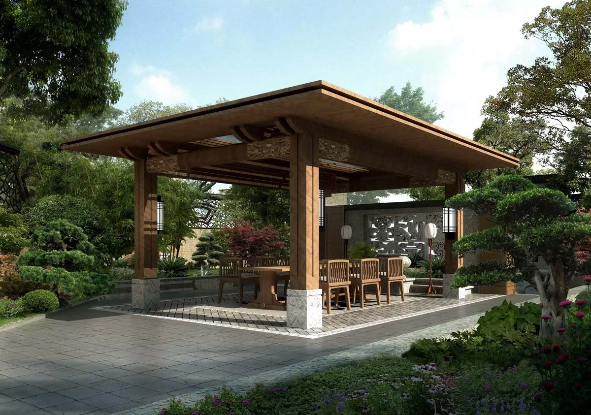 現代涼亭設計可以融入花園,可以延長您的居住空間,營造出戶外活動的理想場所。在設計涼亭時,就得考慮好它的用途,如果你想用于安靜地看書、思考、休閑,最好遠離喧囂的地方,以免受人打擾;如果是用于家人娛樂或在外活動方便,不妨建在游泳池旁,運動休閑兩不誤。為舒適的戶外休息區提供防曬保護,并為外部增添了巨大的視覺吸引力。