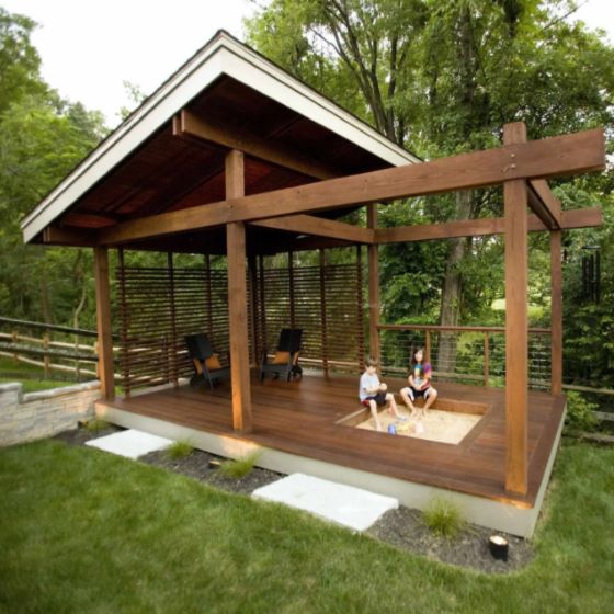 四角涼亭:四角涼亭屬于是比較歐式的木亭造型,富有現代美感。